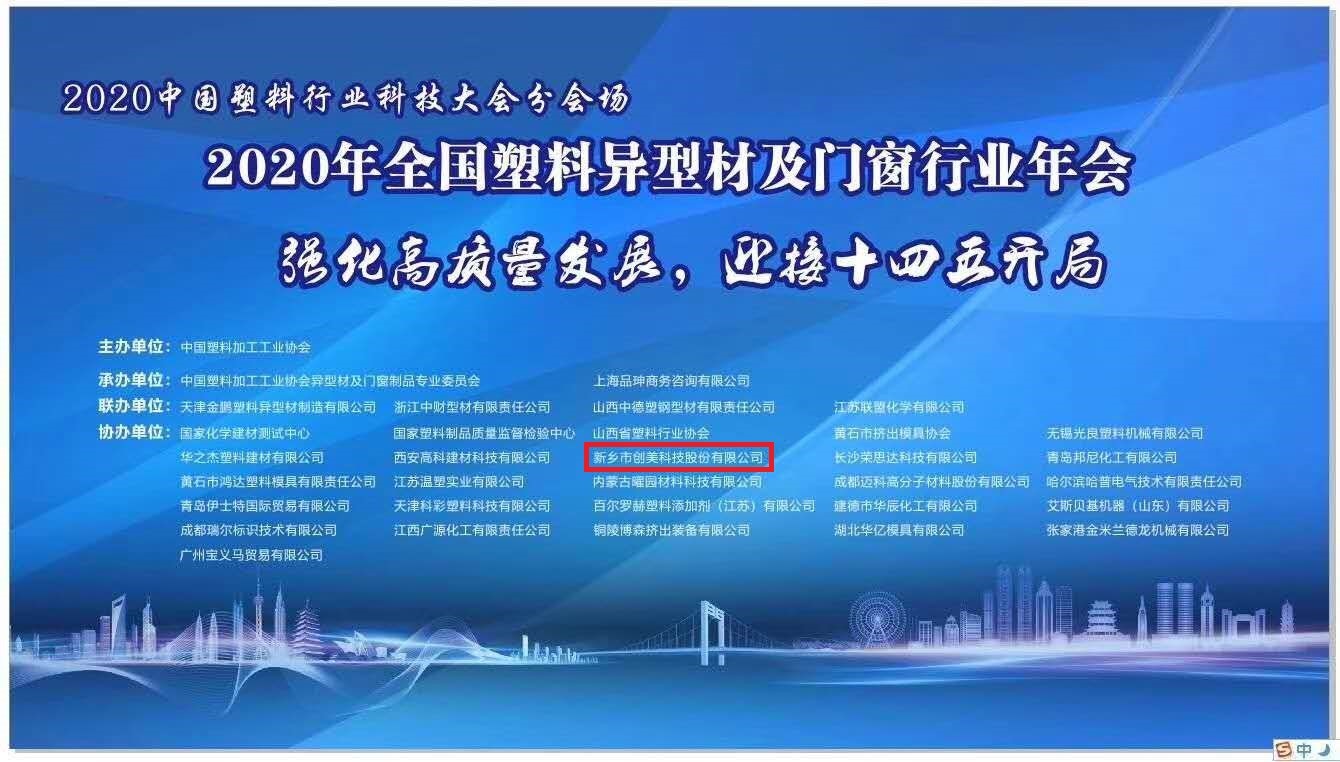 新鄉(xiāng)市創(chuàng)美科技股份有限公司,作為協(xié)辦單位參與了中國塑協(xié)異型材及門窗制品**委員會11月1日-3日在江蘇南京-熊貓金陵大酒店召開的行業(yè)年會。與會中各單位溝通交流并學(xué)習(xí)高分子新材料在軍事,民用及化工各領(lǐng)域的應(yīng)用。