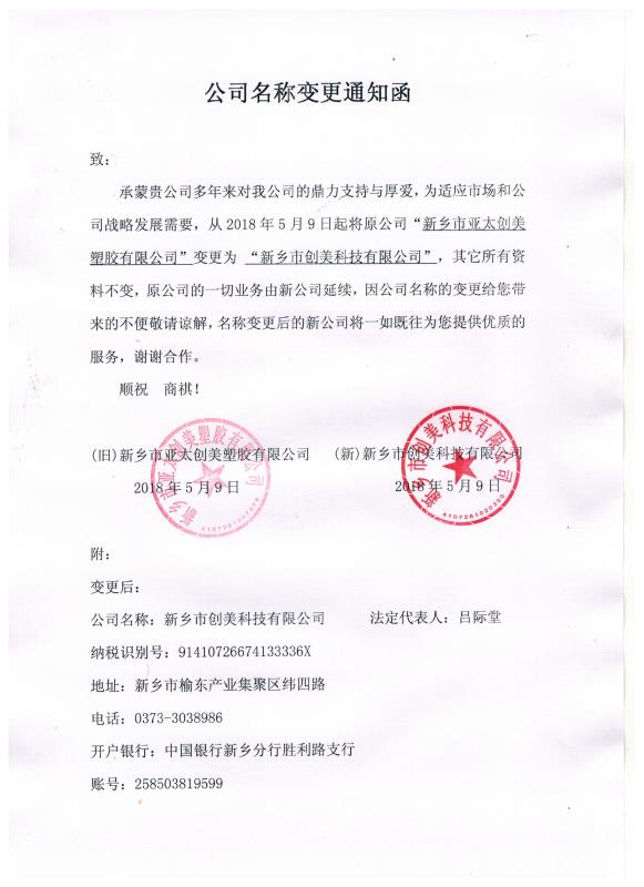 公司名稱變更通知函和開(kāi)票信息的變更